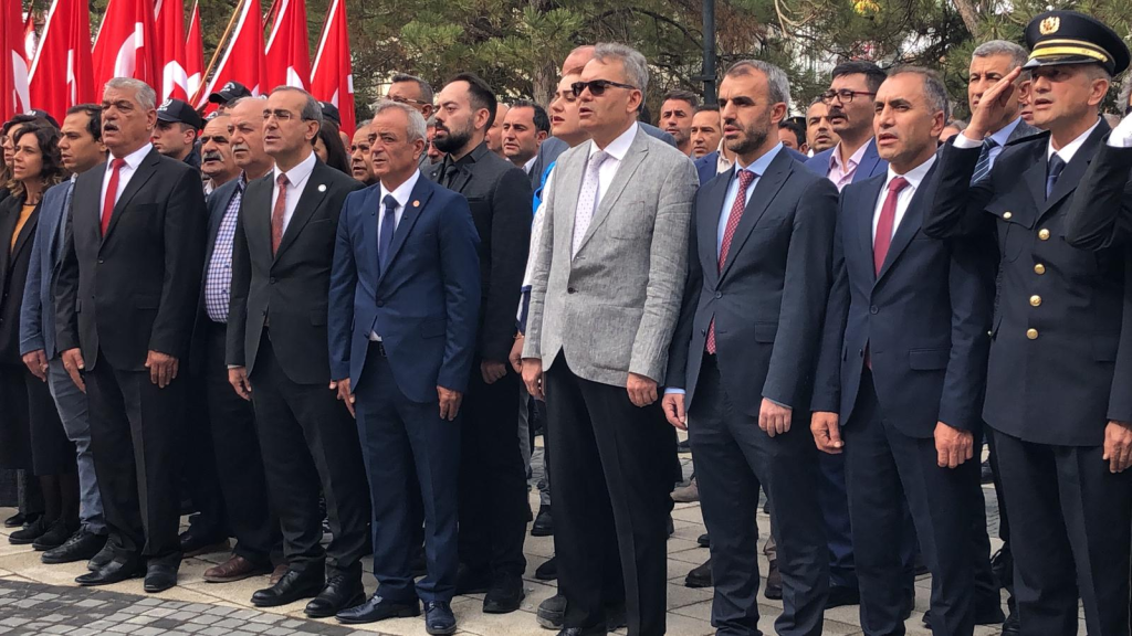 Çelenk sunumunun ardından saygı duruşunda bulunuldu ve İstiklal Marşı hep bir ağızdan okundu.